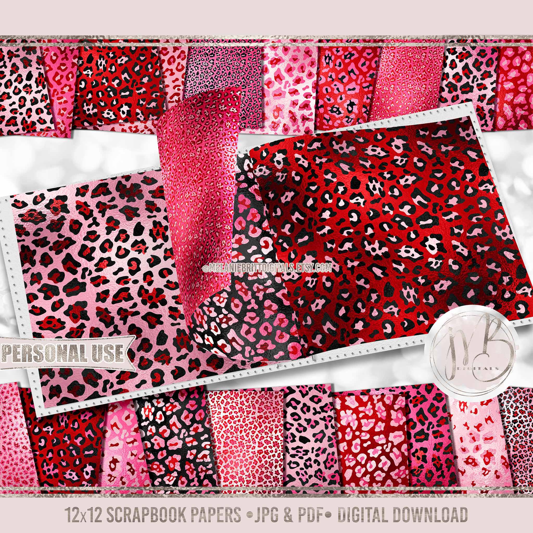 red and pink, Valentines leopard, Valentines Day, leopard print design, leopard paper design, cute leopard design, leopard scrapbook, shiny foil leopard, metallic foil design, shimmering foil, scrapbook paper, digital download, melaniebrittdigitals