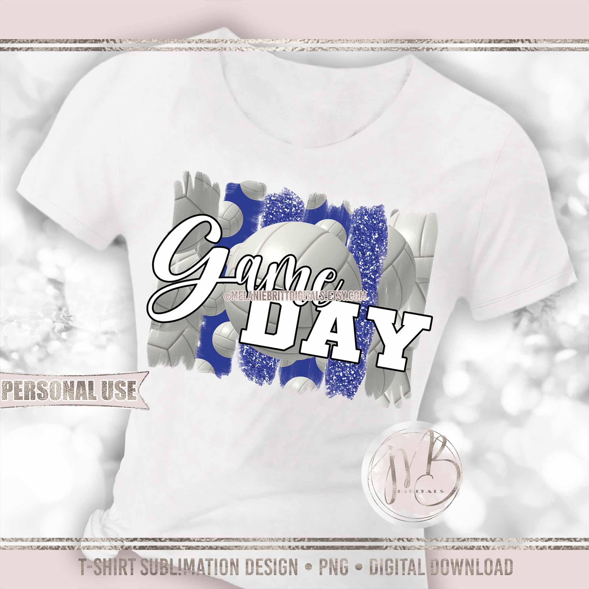 Blue Volleyball "Game Day" T-Shirt Sublimation Download • Glitter Sport Brush Strokes Volleyball Shirt Gift • DIY Print and Press
