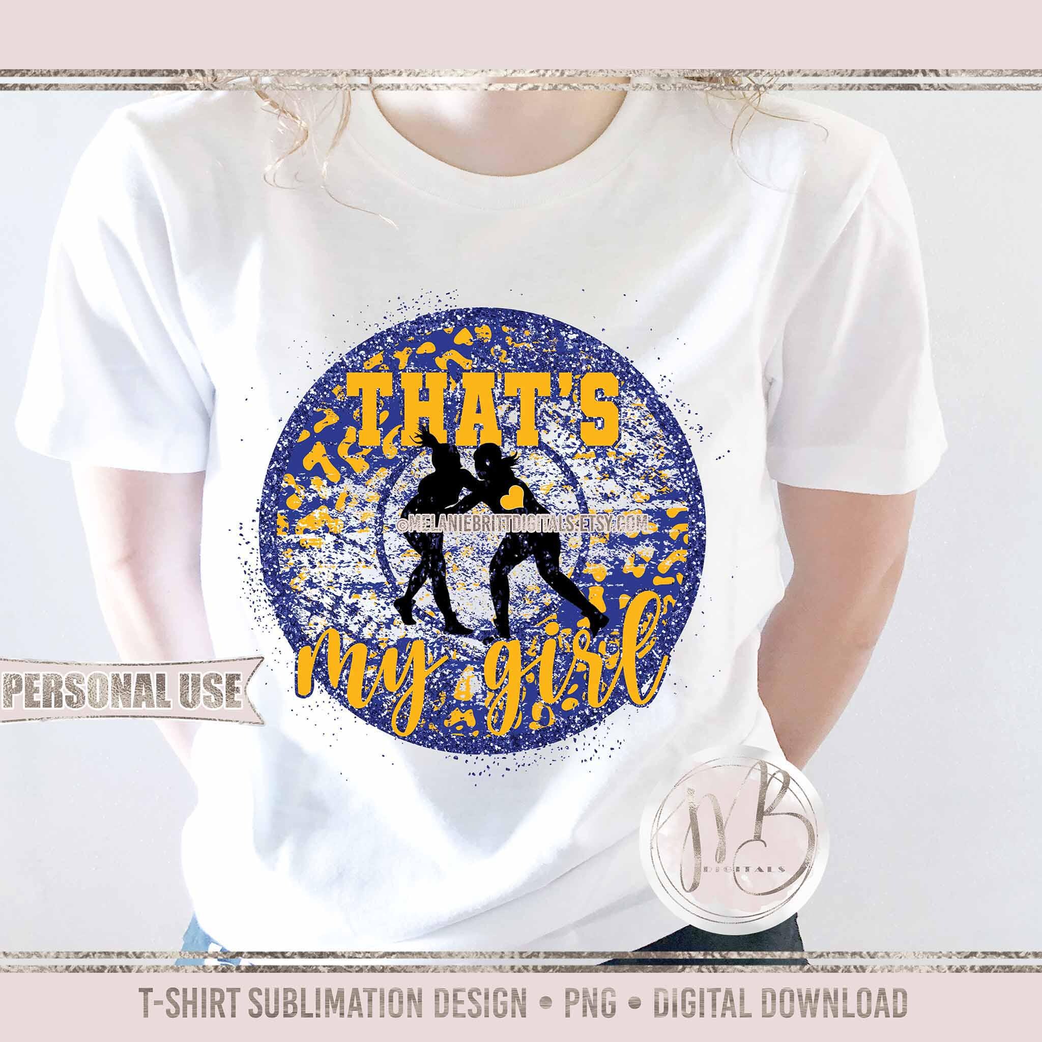 Support your wrestler using our exclusive “Girl Wrestling” t-shirt design. This sublimation design makes the perfect handmade t-shirt gift for a supportive Mom or family member. With a stylish design customized with “That’s my girl” word art, it's a way to display how proud you are of your wrestlers dedication and hard work on the mat. Here's to a great wrestling season and all future matches!