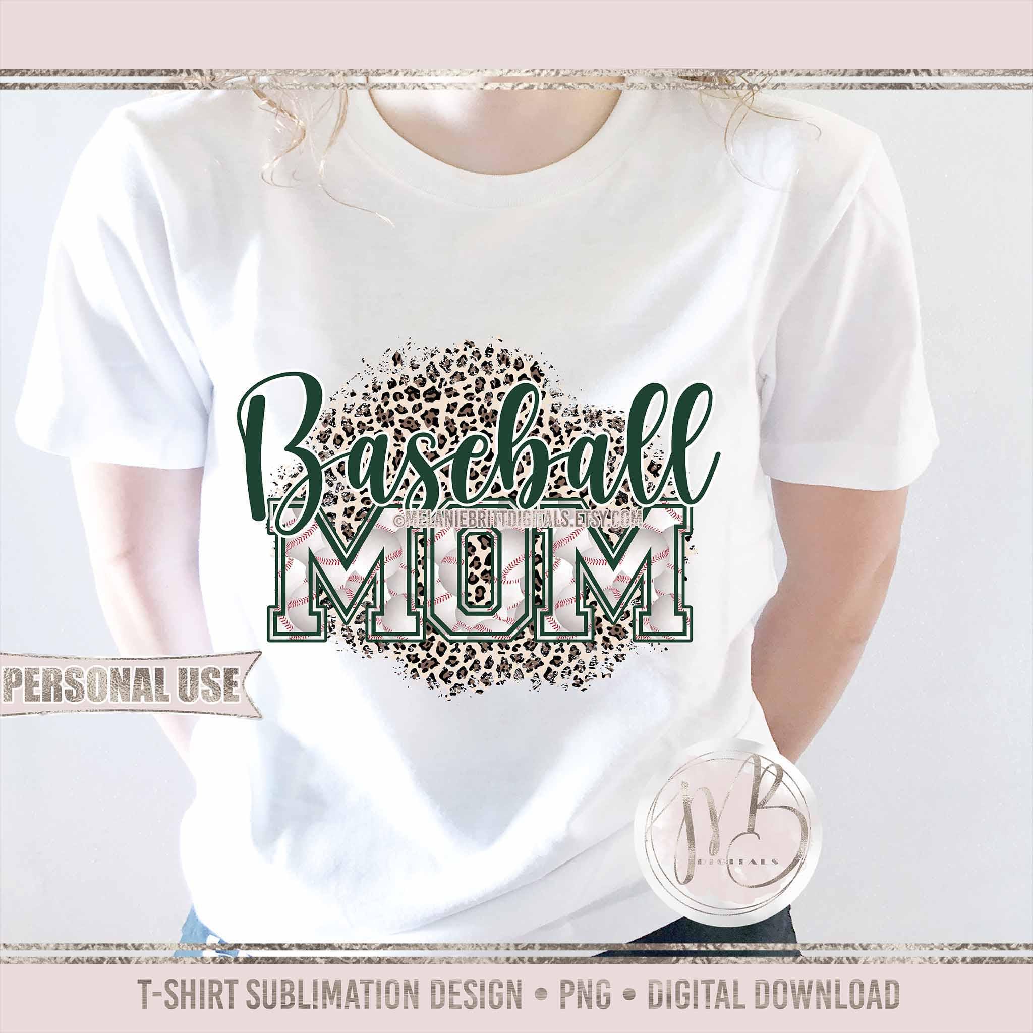 Dark Green Baseball Mom T-Shirt Sublimation Design Download • Classic Leopard Print Baseball Varsity Letters Mom Gift • DIY Print and Press