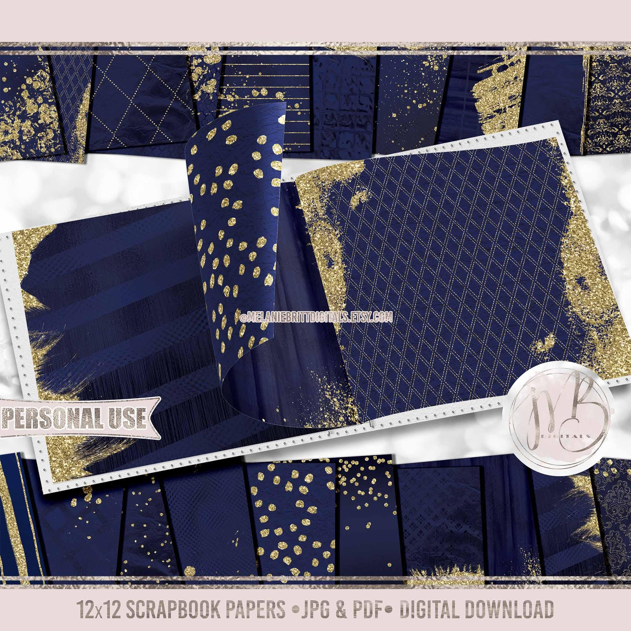 sapphire blue gold, glam digital paper, glam paper design, glamorous scrapbook, foil digital paper, glitter paper, scrapbook paper, printable paper, digital download, digital scrapbooking, 12x12 digital paper, for paper crafts, MelanieBrittDigitals