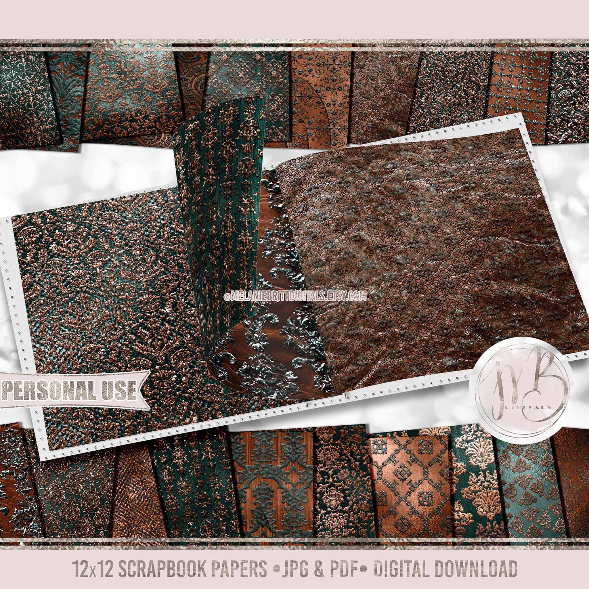 bronze forest green, ornamental damask, embossed damask, damask paper design, decorative damask, scrapbook paper, printable paper, embossing design, shimmering foil, digital scrapbooking, for paper crafts, digital download, melaniebrittdigitals