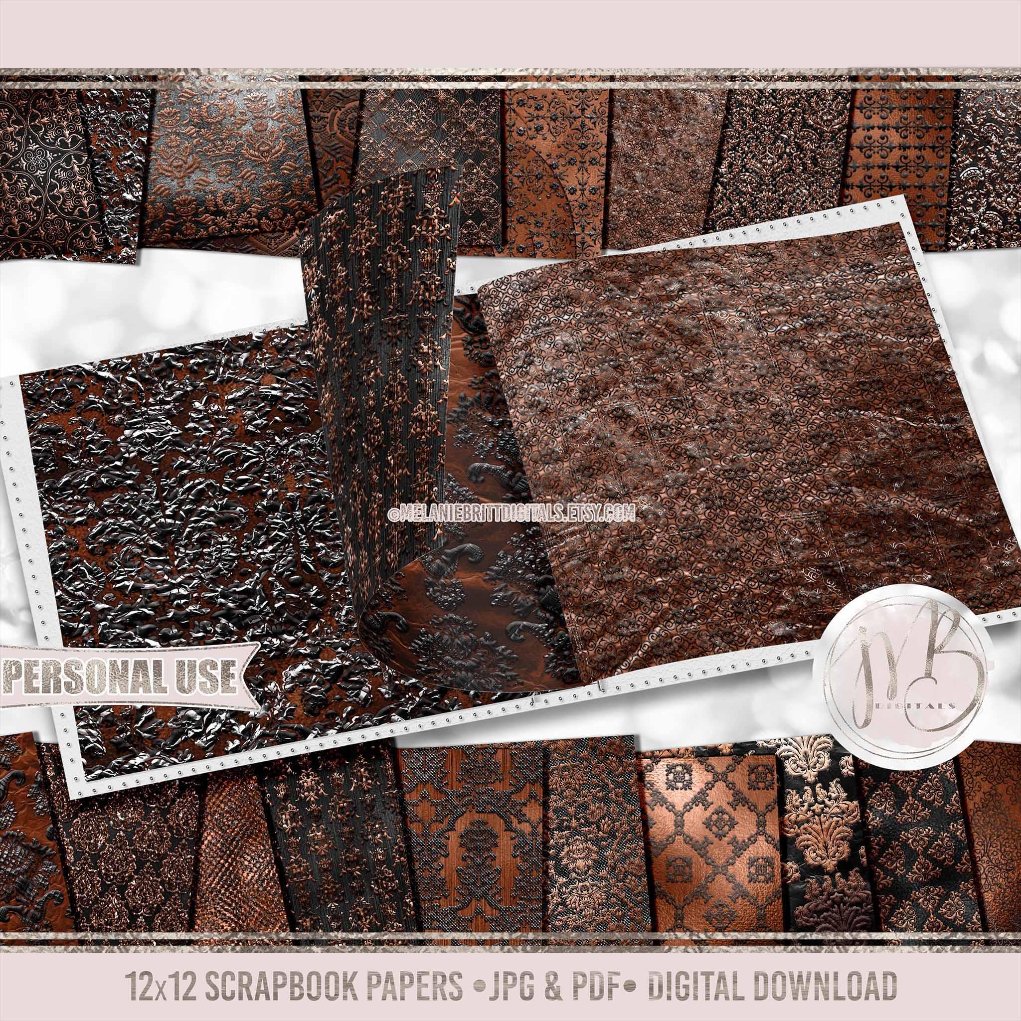 bronze black, ornamental damask, embossed damask, damask paper design, decorative damask, scrapbook paper, printable paper, embossing design, shimmering foil, digital scrapbooking, for paper crafts, digital download, melaniebrittdigitals