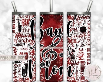 Red Band Mom 20oz Skinny Tumbler Wrap Sublimation Design • Music Instruments Typography Marching Band Mom Gift • DIY Print and Press