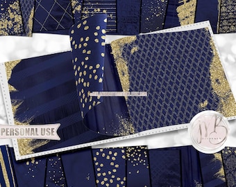 Glam Watercolor Scrapbook Paper Download • Pink and Blue Gold Glitter Watercolor Design • DIY Printable Paper Crafts 20 12x12 JPG & PDF